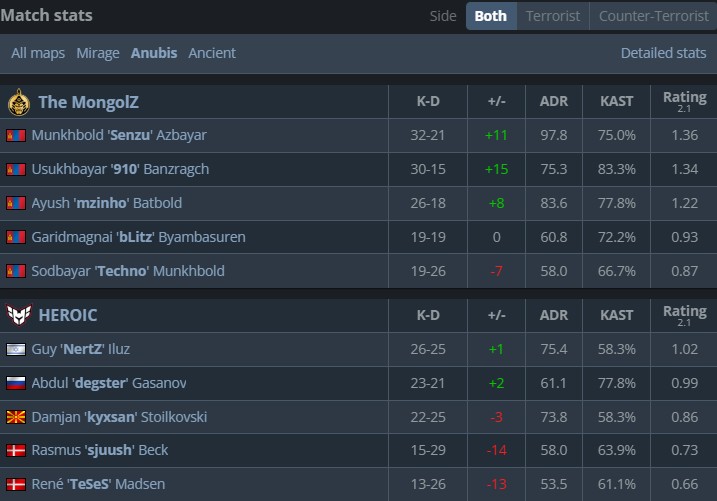 此后HEROIC展现出了小区防守的艺术,在B区连续化解蒙古队猛攻,枪械大师sjuush最后甚至买出连狙。最终随着degster的四杀,HEROIC连续拿到7分将上半场比分定格为8-4。
