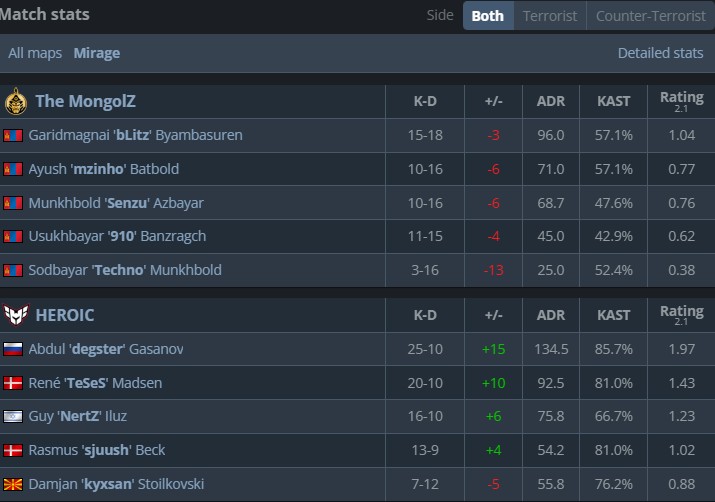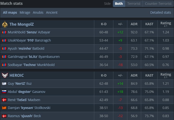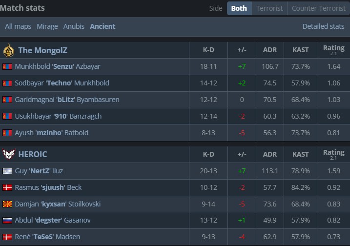 换边后HEROIC彻底失去对于比赛的掌控,MongolZ完成手枪局回防后逼迫HEROIC赌博式强起,kyxsan的团队很难在MongolZ的防守中撕开一个突破口,最终MongolZ 13-6击败HEROIC赢下决胜图,以总比分2-1翻盘晋级赛事八强。
