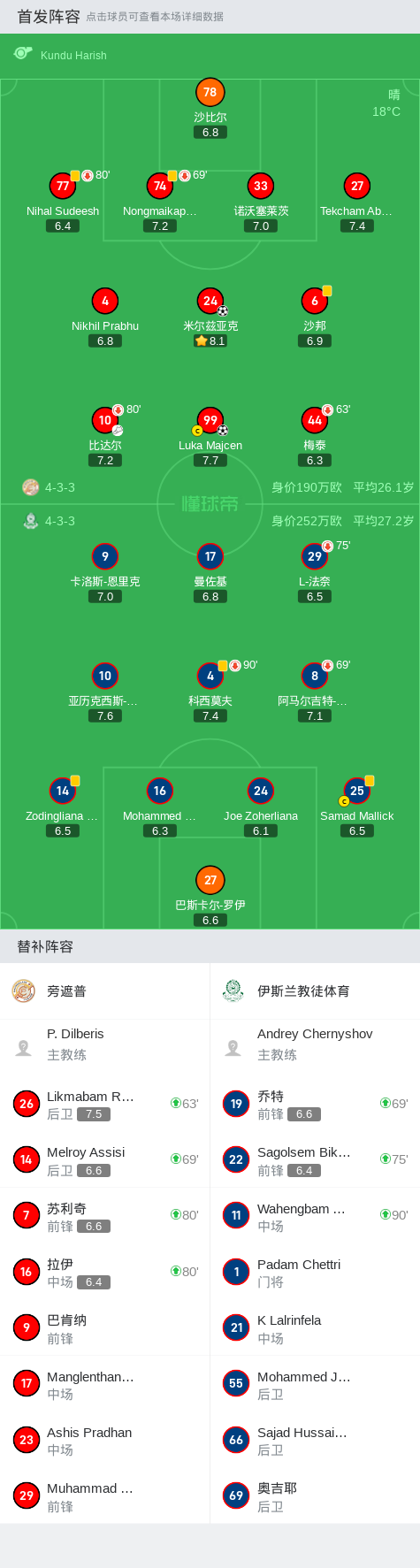 第66分钟,旁遮普球员比达尔助攻米尔兹亚克打入一球。