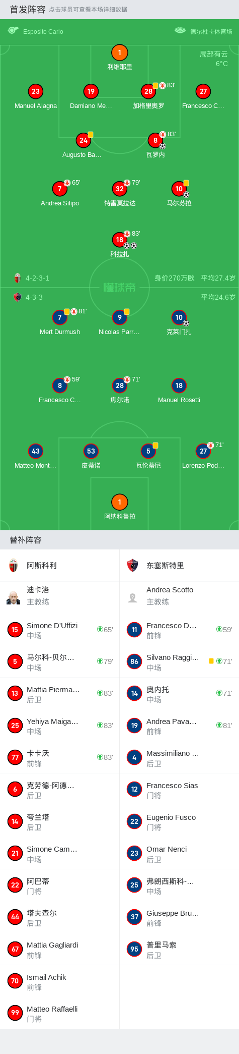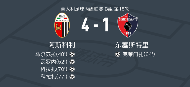 阿斯科利4-1大胜东塞斯特里取意丙3连胜,科拉扎两球,瓦罗内建功
