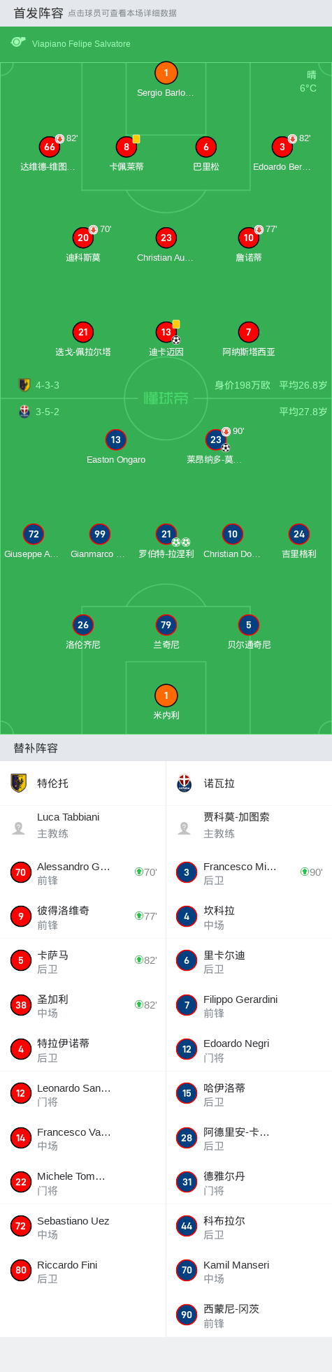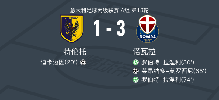 第66分钟,诺瓦拉球员莱昂纳多-莫罗西尼打入一球。
