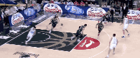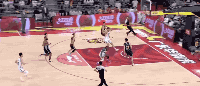 所以常常能看到郭在转换反击中运球一条龙单挑防线,打成所谓 coast to coast 的千里走单骑,有时候是以一敌三,甚至一打五的“少打多”。