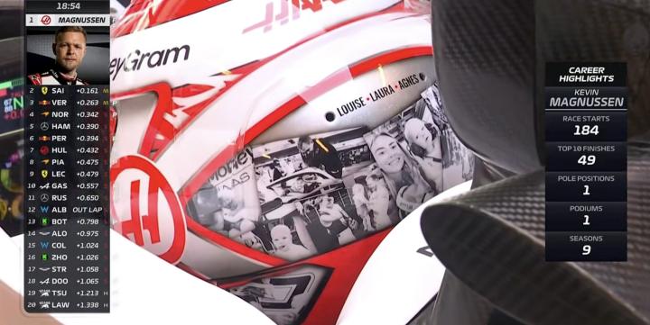 马格努森也迎来自己F1生涯的最后一场比赛,他本场的特别头盔上印有他与自己家人的点点滴滴!