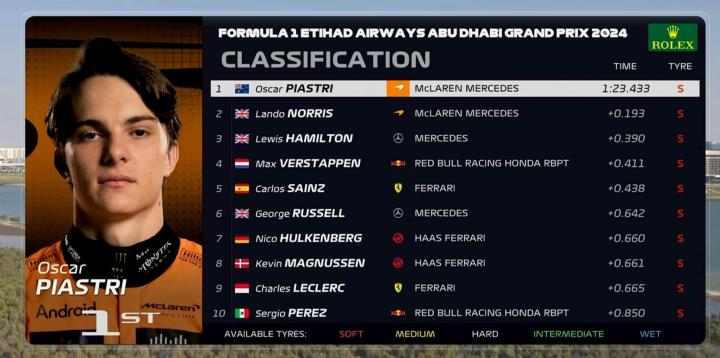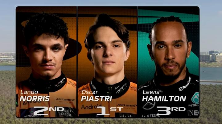 第1-第5:皮亚斯特里、诺里斯、汉密尔顿、维斯塔潘、塞恩斯
