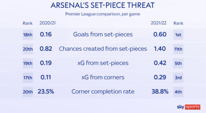 近日,TA也撰文称赞了约弗,他们也列出了2022-23赛季开季以来的数据,证明了约弗的优秀和如今阿森纳定位球战术的突出。