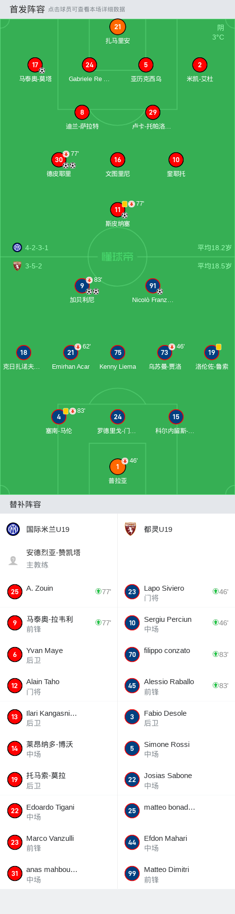 第49分钟,都灵U19球员Nicolò Franzoni打入一球。