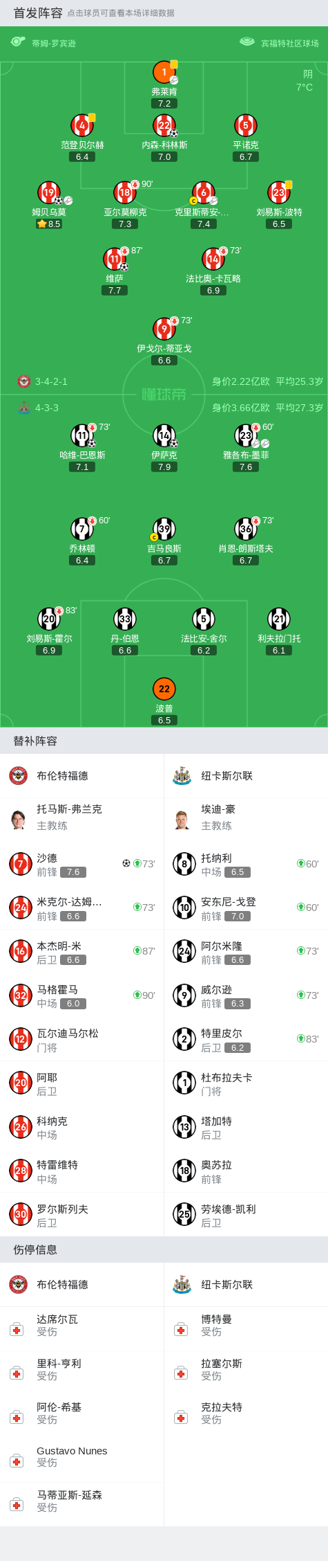 第55分钟,门将弗莱肯长传送助攻,科林斯破门,布伦特福德3-2纽卡