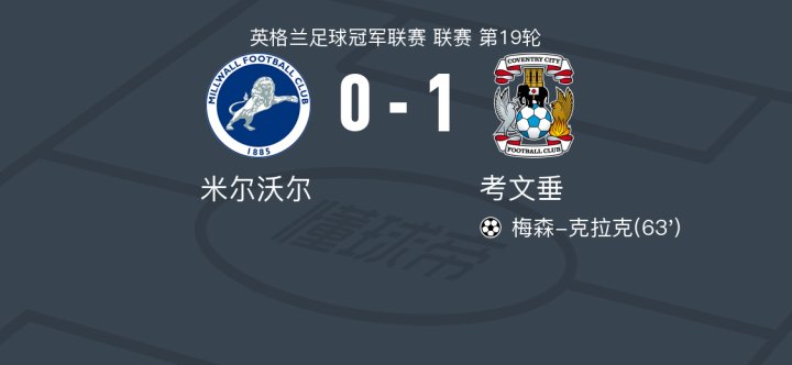 考文垂1-0米尔沃尔,梅森-克拉克制胜
