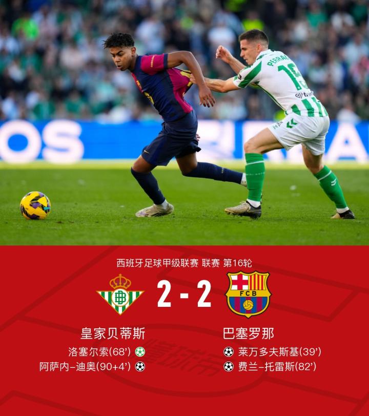 剑南春|巴萨2-2遭贝蒂斯绝平,莱万、费兰破门,亚马尔助攻