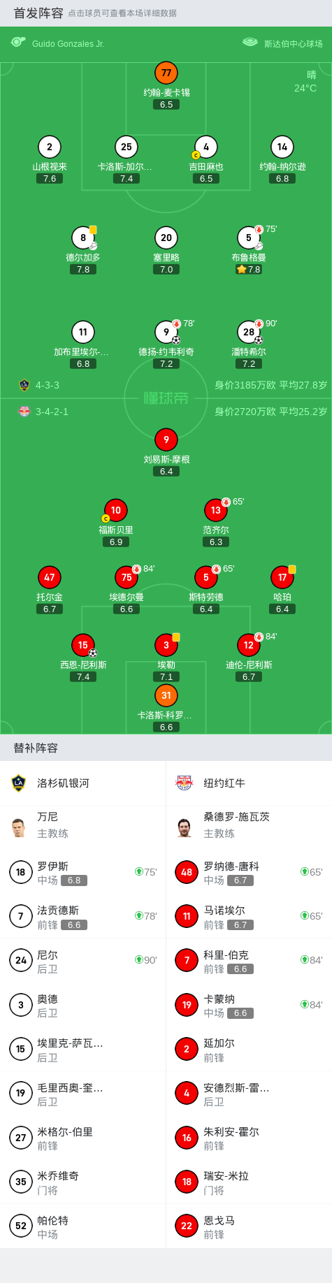 第13分钟,德扬-约韦利奇持球推进到禁区破门得分,洛杉矶银河2-0