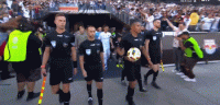 双方球员入场,比赛马上开始