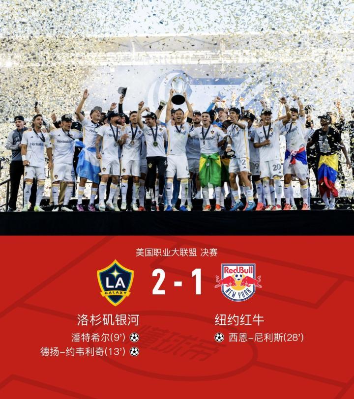 美职联洛杉矶银河2-1纽约红牛夺冠,潘特希尔、约韦利奇破门