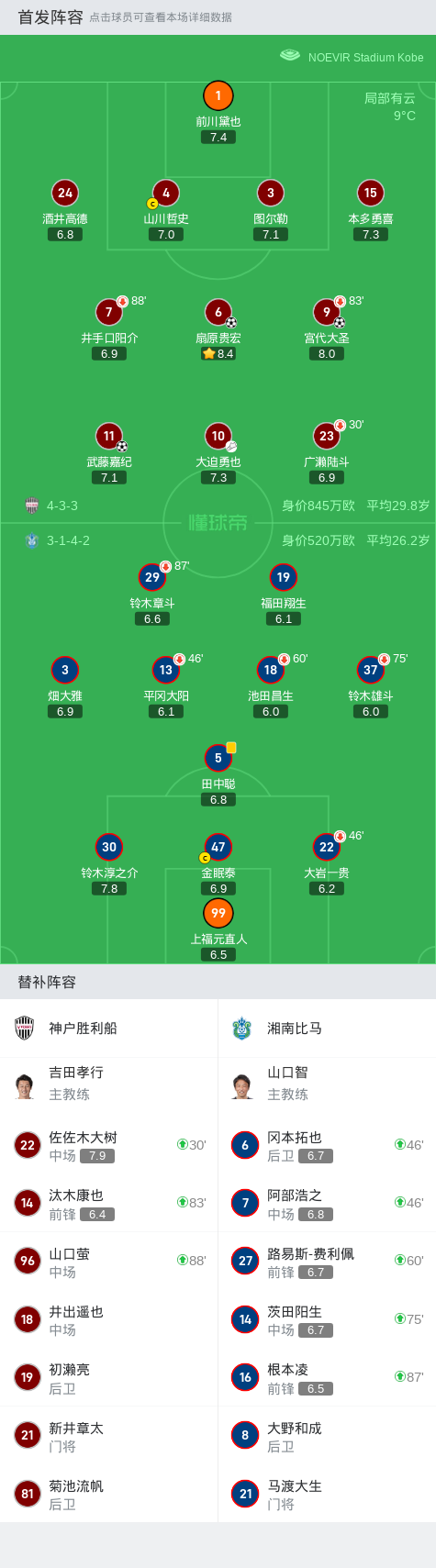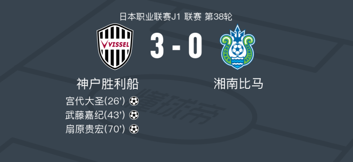 神户胜利船3-0大胜湘南成功卫冕,扇原贵宏建功,武藤嘉纪破门