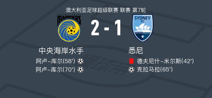 中央海岸水手2-1悉尼,阿卢-库尔包办2球