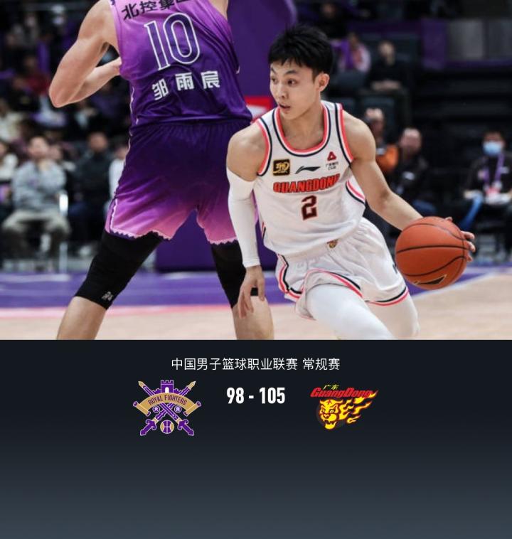 第四节北控特拉维斯拿下5分,广东徐杰拿下10分,最终北控98-105不敌广东