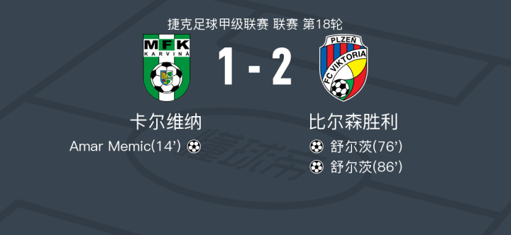 比尔森胜利2-1逆转卡尔维纳,舒尔茨包办2球