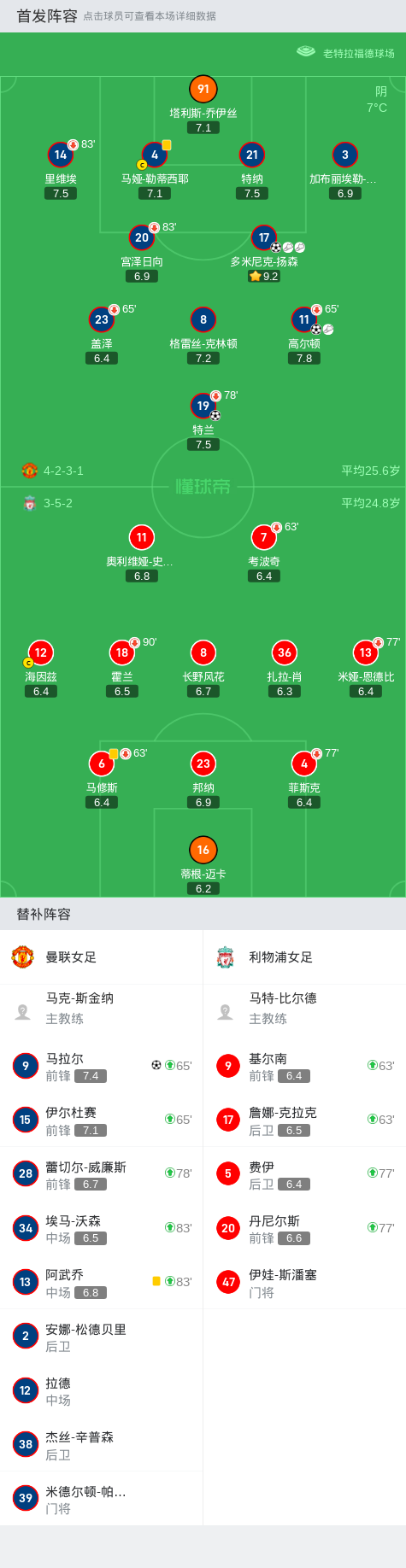 第33分钟,曼联女足球员特兰打入一球。