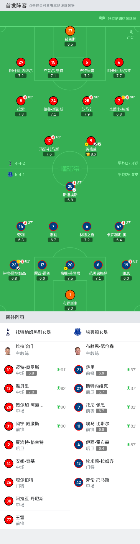 托特纳姆热刺女足2-1埃弗顿女足,王霜替补未出场