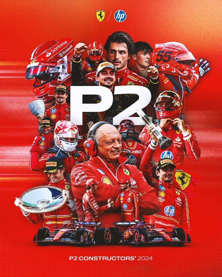 法拉利车队收获车队积分榜第二名,他们在本赛季的表现同样出色!