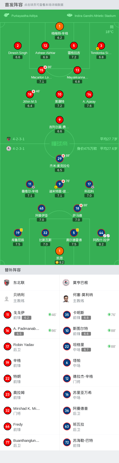 第65分钟,莫亨巴根球员阿西什-拉伊助攻曼维尔-辛格打入一球。