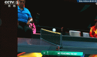 决赛第三场男单比赛第二局,林诗栋4-1领先时,韩国选手吴晙诚发球,林诗栋回球后对手下网。但裁判示意吴晙诚发球擦网,此球重打。