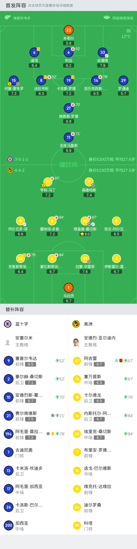 第49分钟,美洲球员理查德-桑切斯打入一球。