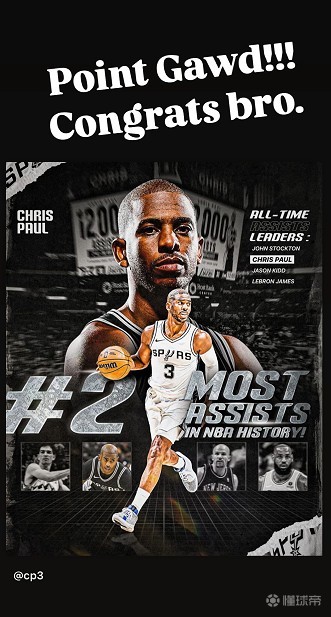 库里祝贺保罗升至NBA历史助攻榜第二:控卫之神!恭喜你兄弟
