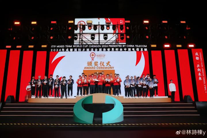 赛后,代表中国队出战的林诗栋在社媒晒照,并写道:“很开心自己能参加这次在成都举行的混合团体世界杯,首先非常感谢球队、协会领导和教练给予我这次参赛的机会,感谢在背后为这个队伍默默付出的每一个人。有这样强大的团体坐在场下就是我在场上最大的后盾 ! 最后我们整个中国乒乓球队非常‘团结’地拿下了这个冠军,2024很好2025会更好。”