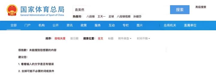 体育总局官网已无法搜索到袁昊然,此前他曾对运动员发表不当言论