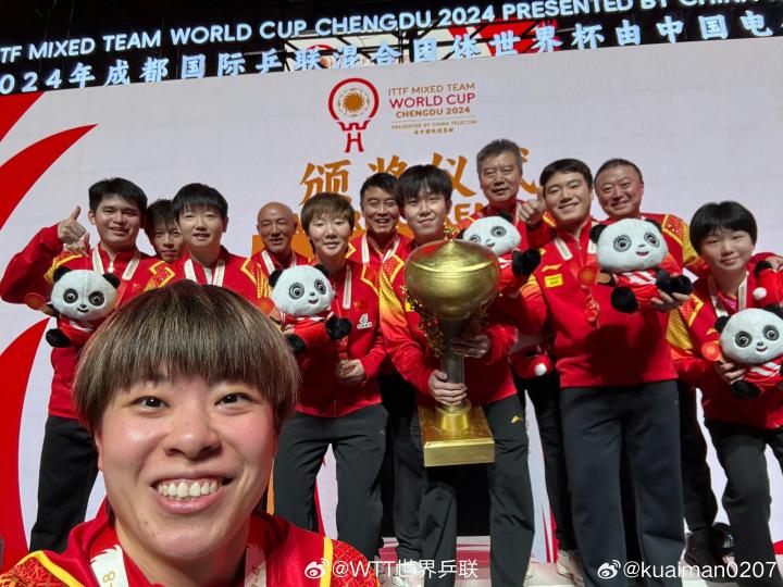 随国乒混团世界杯卫冕,蒯曼:感谢团队里每一个人的付出凡尔赛小木屋 @懂球帝2024-12-09 19:1812月8日,2024年国际乒联成都混合团体世界杯决赛,中国队8比1战胜韩国队夺得冠军。赛后,代表中国队出战的蒯(kuǎi)曼发博晒照,并写道:“非常开心,非常荣幸能够代表国家参加世界杯混合团体赛,也非常感谢领导、教练组给的机会和信任。感谢团队里每一个人的付出,大家都很棒。”按照赛程安排,2024年乒超联赛第一阶段将于2024年12月12日至12月16日在湖南长沙举行。展开更多