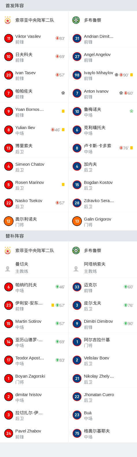 第48分钟,多布鲁察球员Ivaylo Mihaylov打入一球。