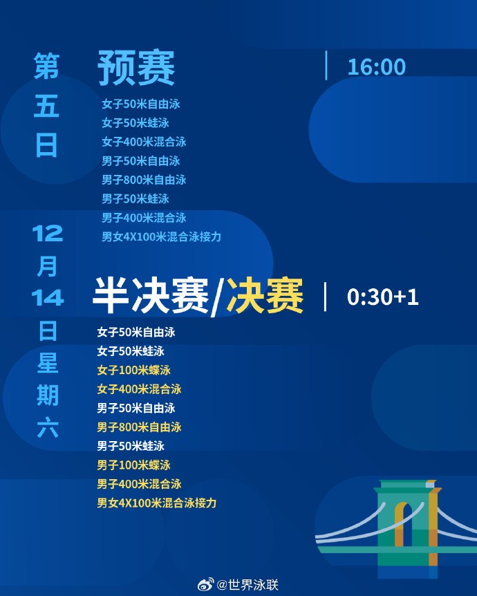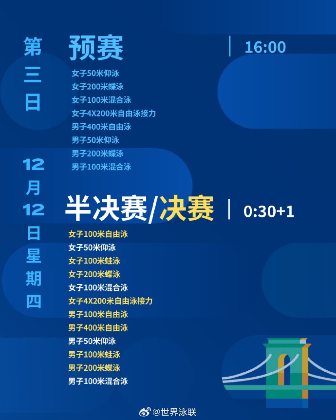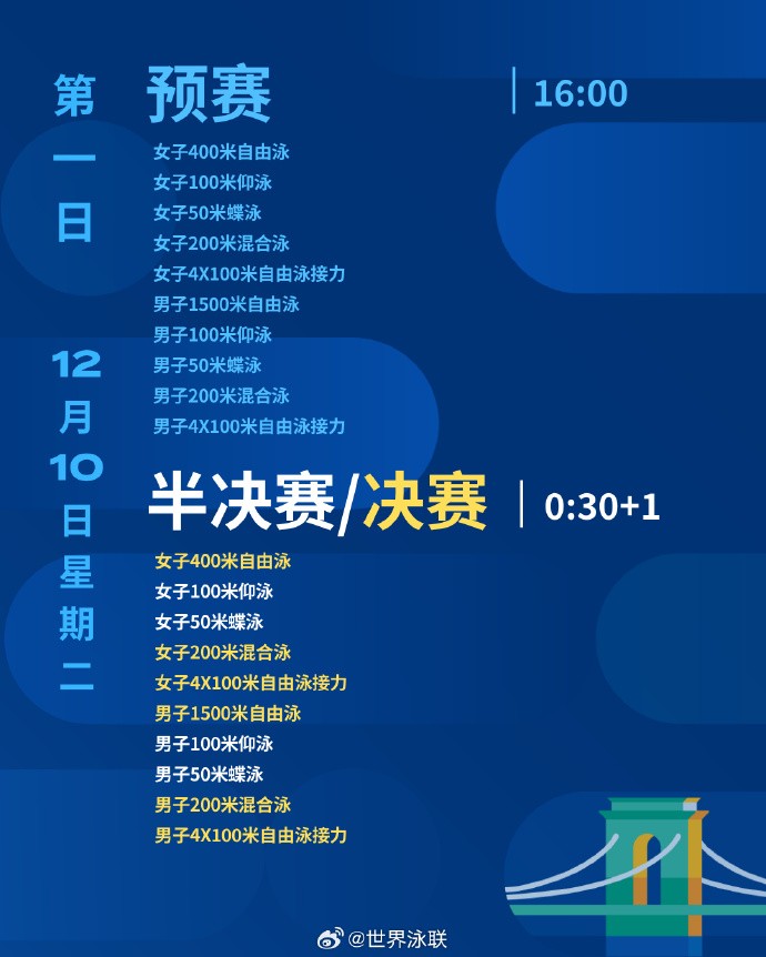 短池游泳世锦赛赛程公布:12月10日开战,12月16日凌晨收官我的靴子里面有蛇 @懂球帝2024-12-09 22:592024年短池游泳世锦赛将于12月10日至15日在匈牙利首都布达佩斯进行,目前本届世锦赛的赛程公布。中国队的潘展乐、徐嘉余、汪顺、张雨霏、孙佳俊、王长浩不会出战,唐钱婷、覃海洋领衔出征。众多欧美名将也宣布退出此次世锦赛,包括澳大利亚的麦基翁、查尔莫斯、美国的莱德基、瑞典的舍斯特伦等人。展开更多