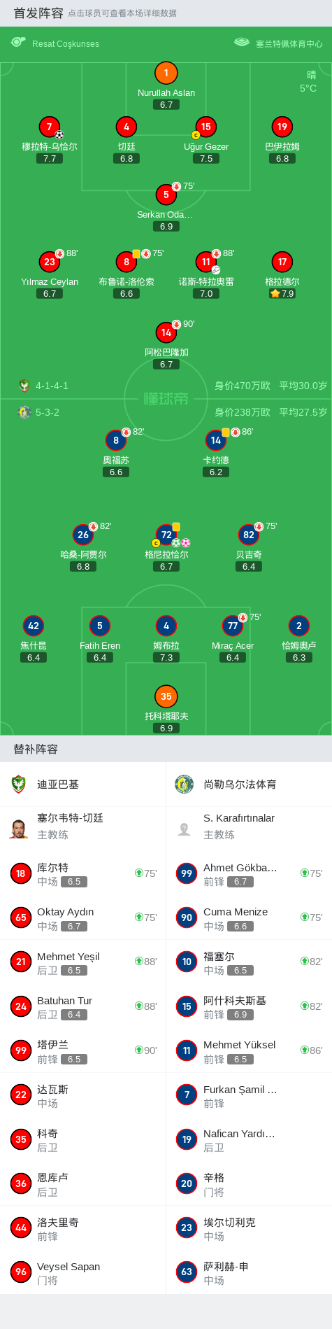 第12分钟,迪亚巴基球员诺斯-特拉奥雷助攻穆拉特-乌恰尔打入一球。