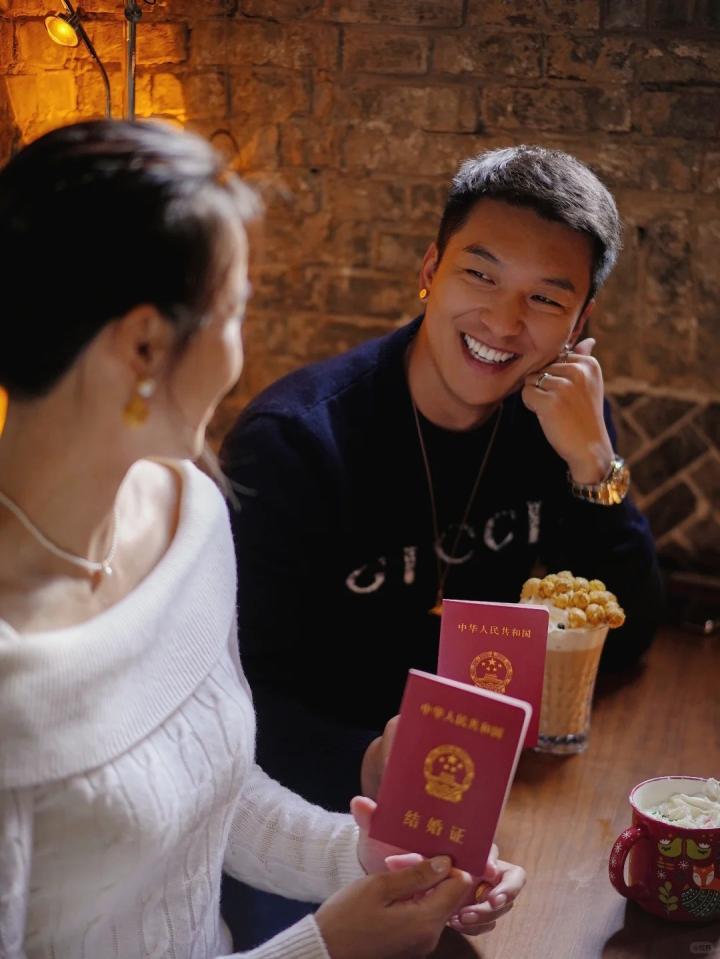 今日晚间,中国网球金花王蔷更新个人社媒,晒出与丈夫张浩领证的照片。