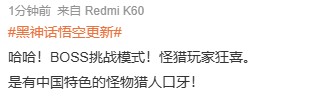 随后,“黑神话悟空更新”的话题登上微博热搜并引起广大网友热议。不少玩家表示,虽然更新有点晚,但是很开心看到《黑神话》在不断优化升级用户体验,期待DLC。