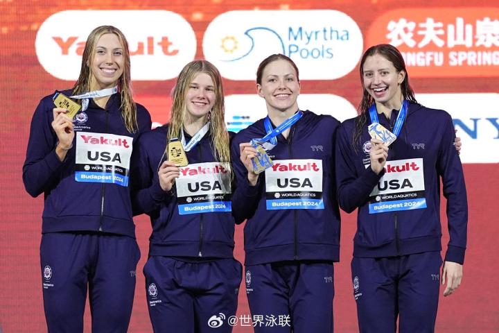女子4X100米自由泳接力决赛 美国队 3分25秒01