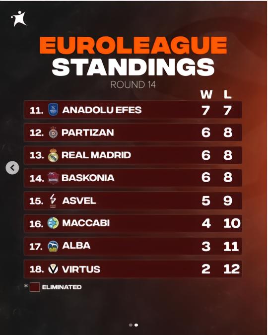 目前,24-25赛季欧篮联常规赛已进行到第14轮。上赛季,皇家马德里男篮的常规赛战绩为27胜7负,而本赛季该球队已经输了8场比赛了。