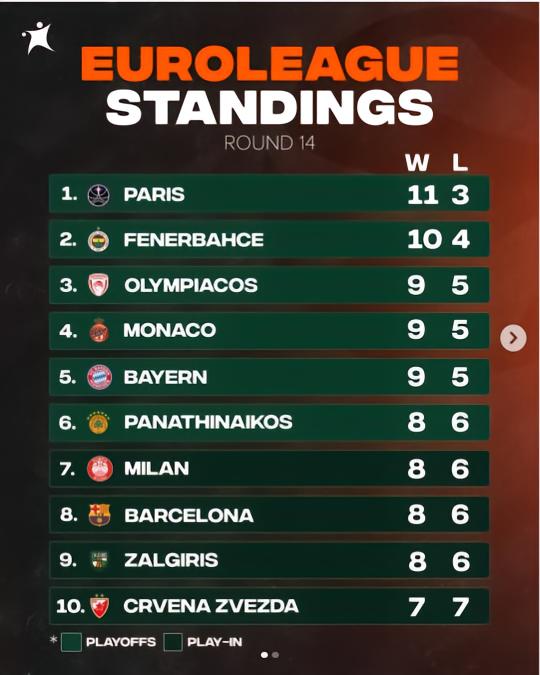 上赛季,皇马男篮在总决赛中以80-95不敌帕纳辛奈科斯男篮。而本赛季,这支卫冕冠军球队以8胜6负的战绩排名第6,暂时位列季后赛席位之内。