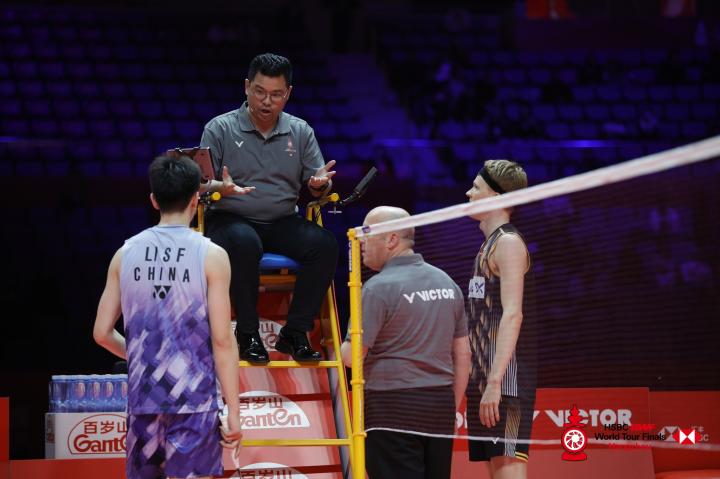 世界羽联世界巡回赛总决赛男单小组赛首轮,中国选手李诗沣0-2不敌丹麦选手安东森。第二局李诗沣17-18落后的关键时刻,安东森在丢分后认为裁判咳嗽造成干扰,主裁判最终判罚此分重打。赛后李诗沣在接受采访时对此争议判罚做出了回应。【这也行?安东森在回球下网后认为裁判咳嗽造成干扰,主裁判定此分重打】