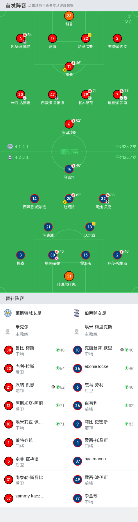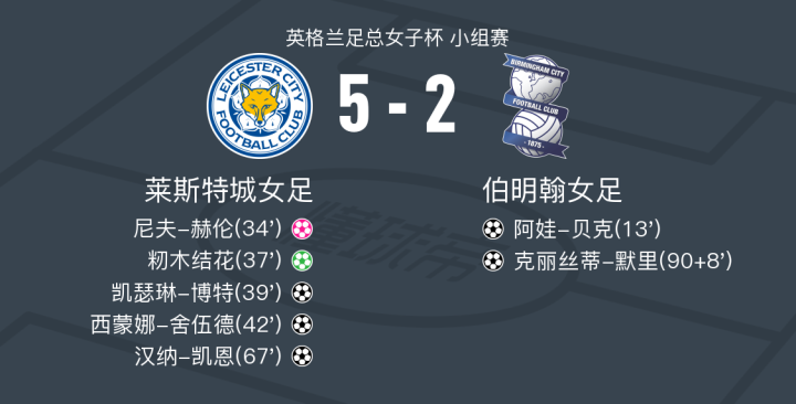 莱斯特城女足5-2大胜伯明翰,汉纳-凯恩、西蒙娜-舍伍德破门