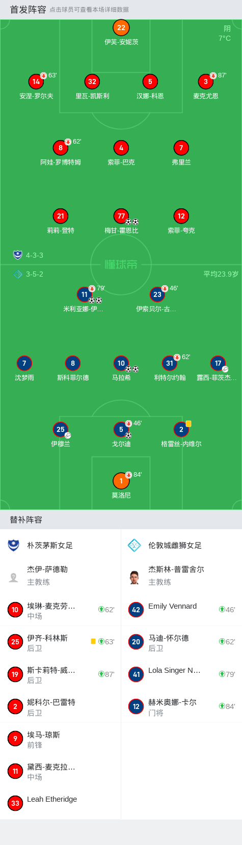 朴次茅斯女足2-5伦敦城雌狮女足,沈梦雨首发打满全场