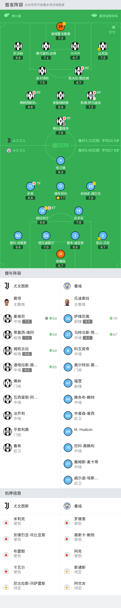 第74分钟,维阿传中,麦肯尼凌空抽射破门,尤文2-0领先曼城