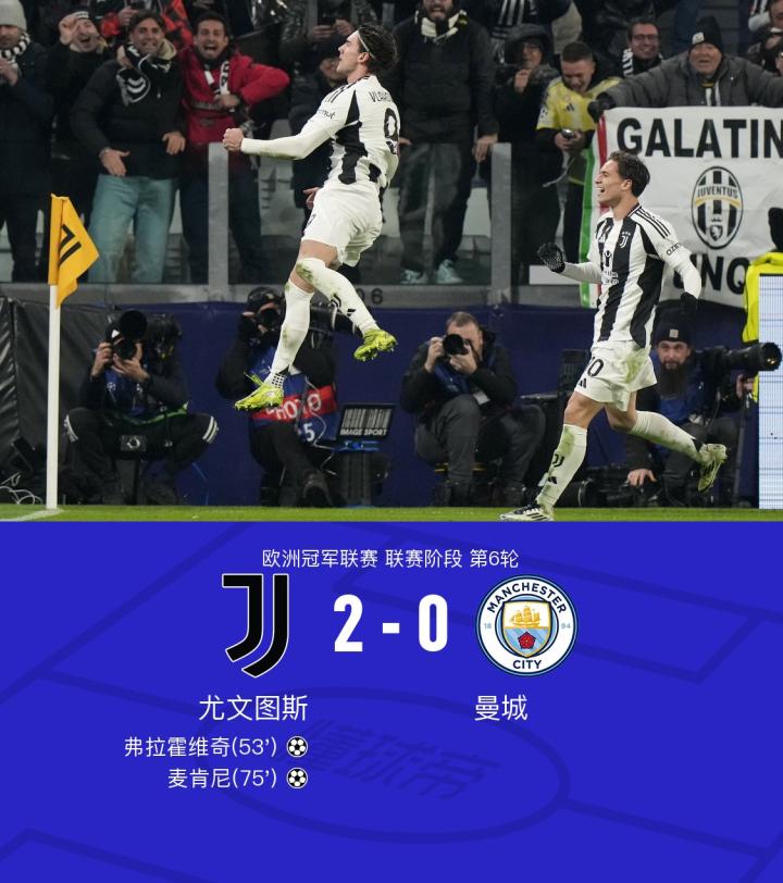 尤文2-0曼城,弗拉霍维奇头球破门,麦肯尼凌空抽射建功
