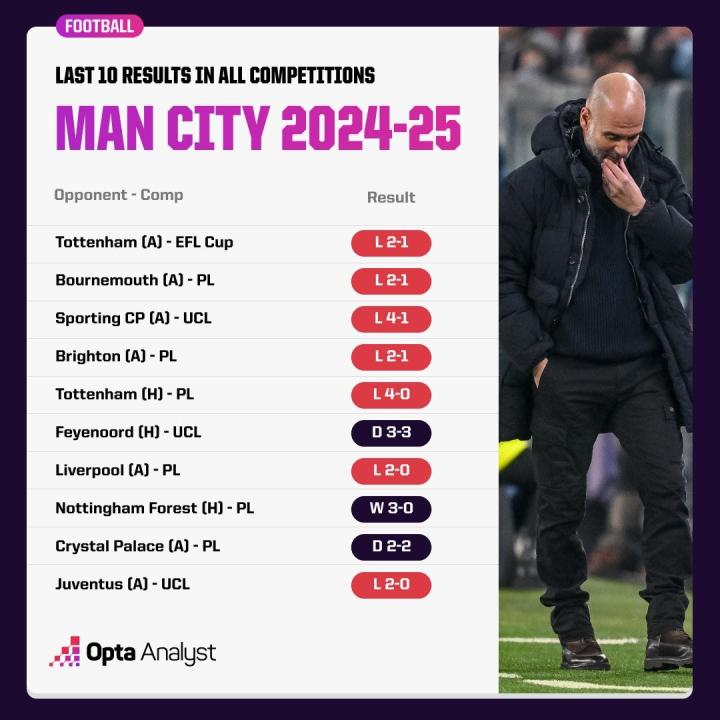 曼城近10场输了7场,与他们此前105场输球场次持平ETChalmers @懂球帝2024-12-12 07:25欧冠联赛阶段第6轮,曼城客场0-2不敌尤文图斯,至此,曼城最近10场比赛输了7场,与他们此前105场比赛的输球场次持平。在欧冠客场0-2输给尤文图斯,曼城各项赛事最近10场比赛战绩为1胜2平7负。据统计,曼城最近10场比赛的输球场次与他们此前105场比赛的失利场次持平。下一场比赛,曼城将在英超主场迎来曼市德比。展开更多