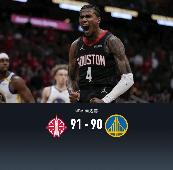 第四节,开节短暂拉锯之后,勇士库里命中三分,紧跟沃特斯反击打成领先6分,火箭伊森站出来三分止血,随后勇士库里、格林下场休息,勇士沃特斯、汤杰姆斯基相继三分维持领先,最后4分钟勇士主力回来,双方继续保持高强度,勇士一度领先7分,随后火箭范弗利特、申京相继得分追至1分分差,最后时刻双方混战拼抢篮板,吹罚勇士库明加犯规,火箭杰伦格林两罚全中反超1分,最后3.5秒留勇士最后一攻不中,最终火箭91-90战胜勇士。