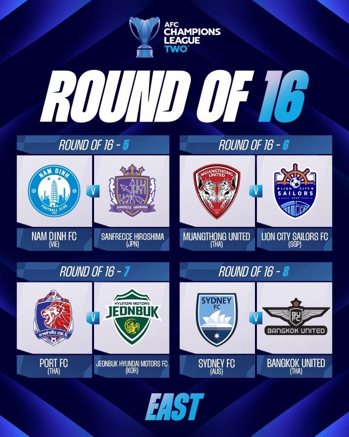 亚冠二级联赛1/8决赛对阵出炉:泰港vs全北,南定vs广岛三箭