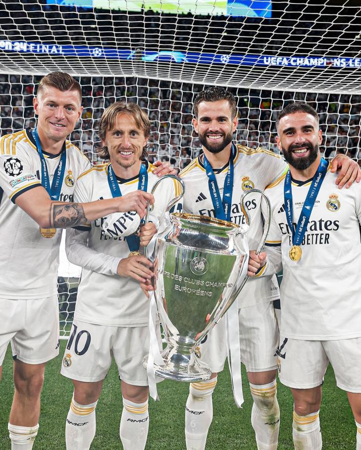 欧冠之王皇家马德里再次加冕欧冠冠军,安切洛蒂五冠加身奠定欧冠教练里GOAT的地位。在温布利,卡瓦哈尔与维尼修斯的进球帮助克罗斯实现了完美告别,也让罗伊斯的多特生涯以遗憾收尾。赛后,克罗斯、莫德里奇、纳乔、卡瓦哈尔共同合影,他们都赢得了个人的欧冠第6冠,追平了皇马前辈亨托,成为了欧冠历史上夺冠次数最多的球员。