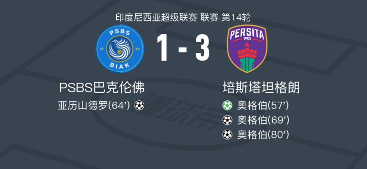 第64分钟,PSBS巴克伦佛球员阿加尼亚拉斯助攻亚历山德罗打入一球。