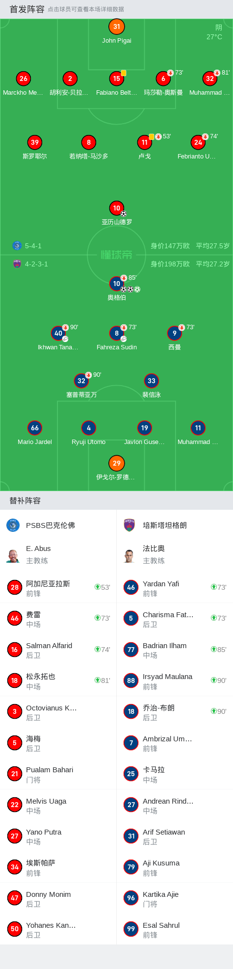 第80分钟,培斯塔坦格朗球员Ikhwan Tanamal助攻奥格伯打入一球。