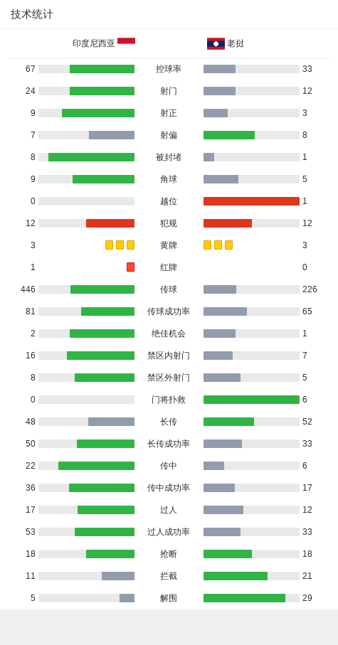在东南亚足球锦标赛小组赛的较量中,印度尼西亚与老挝展开了一场激烈的对决。比赛中,老挝的Phousomboun Panyavong率先打破僵局,随后印度尼西亚的阿雷尔迅速扳平比分。紧接着,老挝的Phathana Phommathep再次为球队取得领先。然而,印度尼西亚的穆罕默德-费拉里在队友阿尔汗的助攻下,再次将比分扳平。 比赛进入下半场,印度尼西亚的马塞利诺-费迪南因累计黄牌被罚下场,但这并没有阻止穆罕默德-费拉里在多尼-帕蒙卡斯的助攻下再度破门,为印度尼西亚取得领先。老挝的Peeter Phanthavong在Damoth Thongkhamsavath的助攻下,最终将比分锁定为3-3。双方经过一番激烈的较量,最终以平局收场。